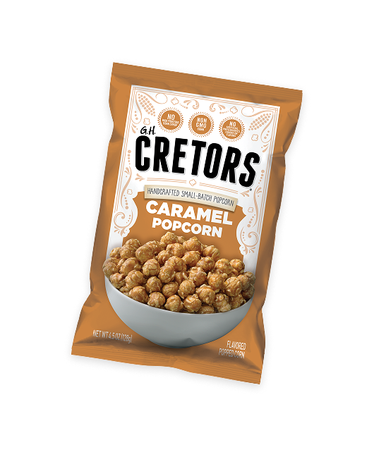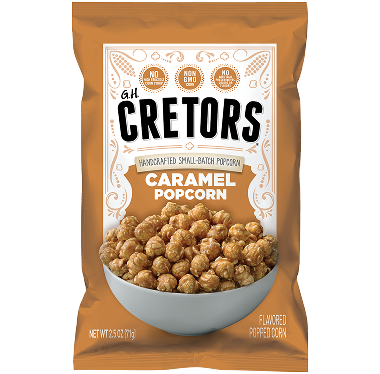 Sweet tooth, look no further. We introduce you to G.H. Cretors Caramel popcorn! Our classic caramel corn is handcrafted with care, using only real butter and brown sugar for that rich, golden sweetness in every bite. Each small batch is slowly cooked to perfection, creating the signature crunch and craveable flavor that makes Cretors so special.